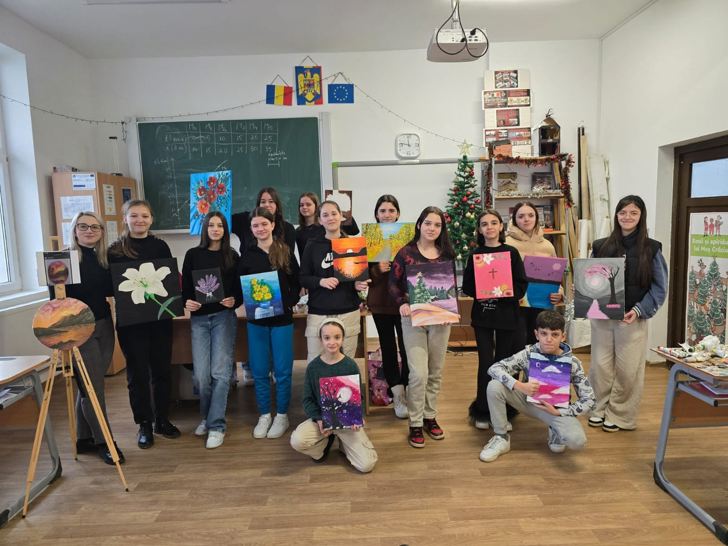 🖌️ Creativitatea prinde viață în Școala Altfel! Elevii își pun imaginația la treabă în cadrul atelierului de pictură, unde creează tablouri, felicitări și decorațiuni tematice pentru Crăciun. 🎄✨